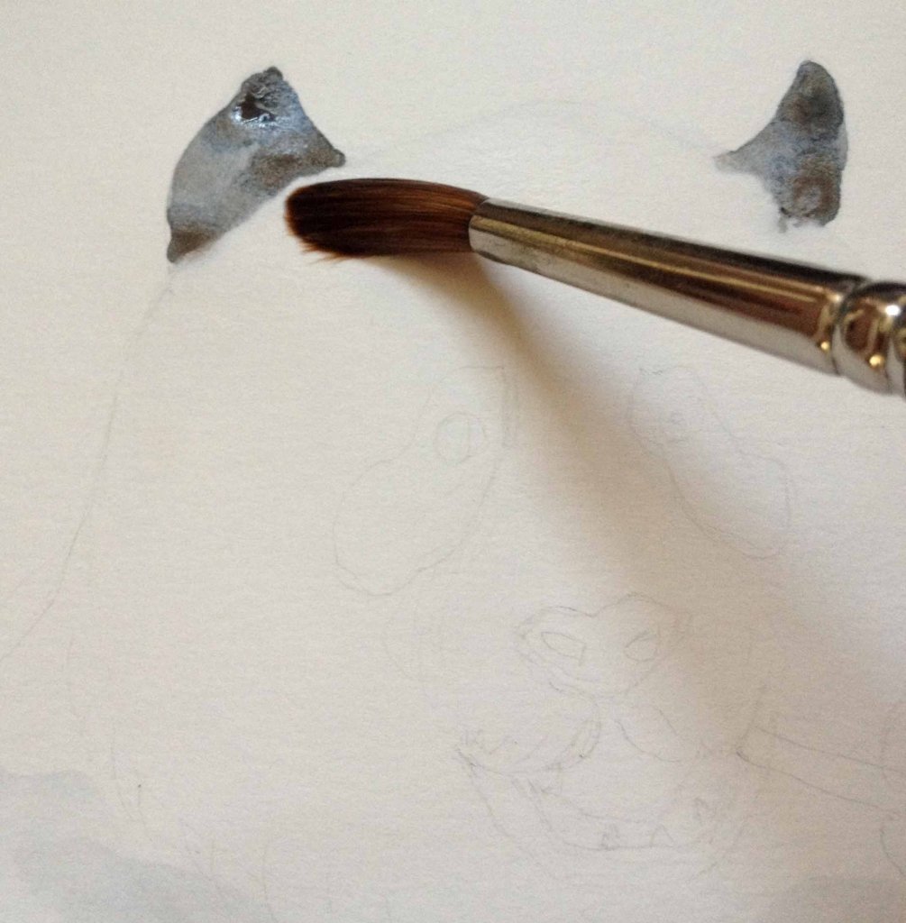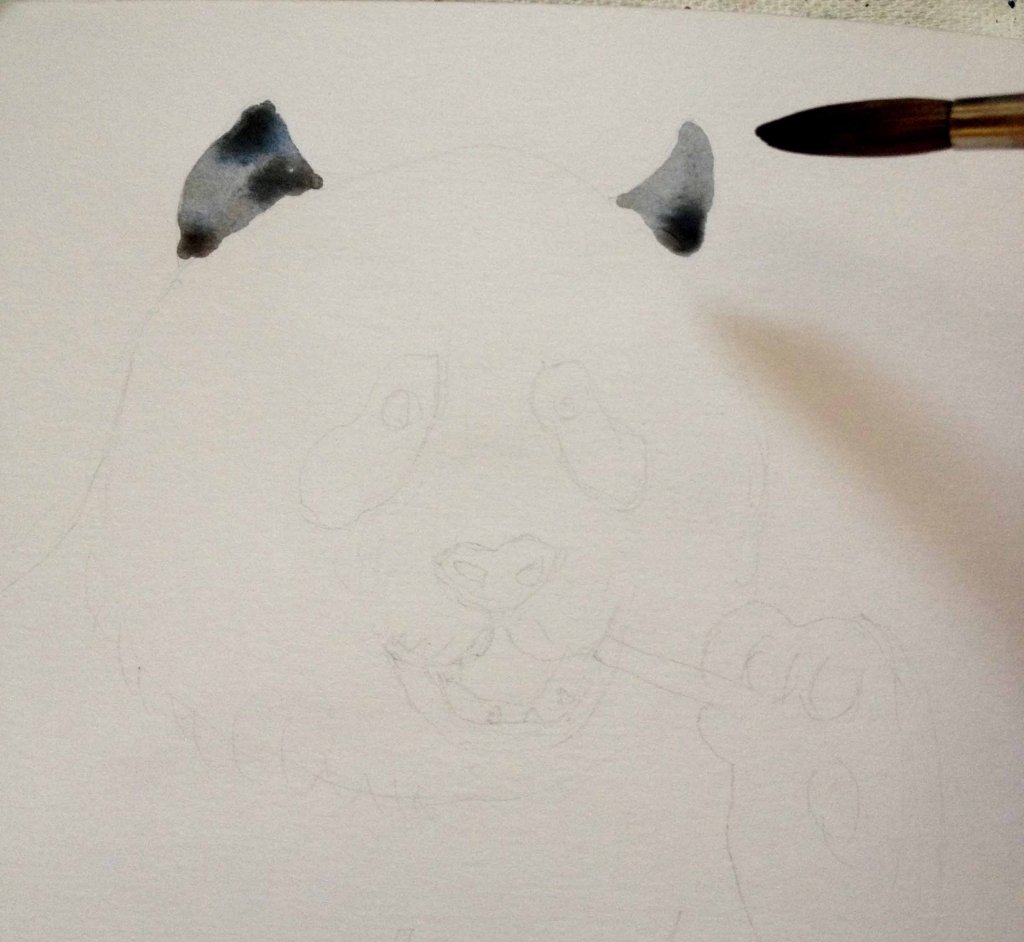 2. I gently painted the ears. I rarely use black and prefer to mix colors.