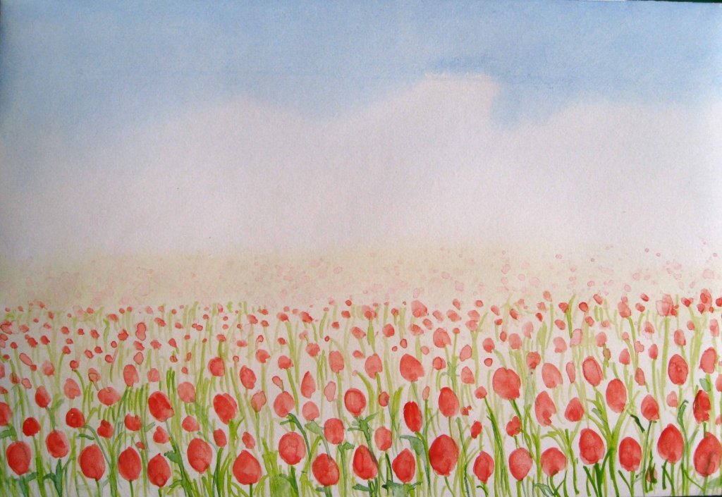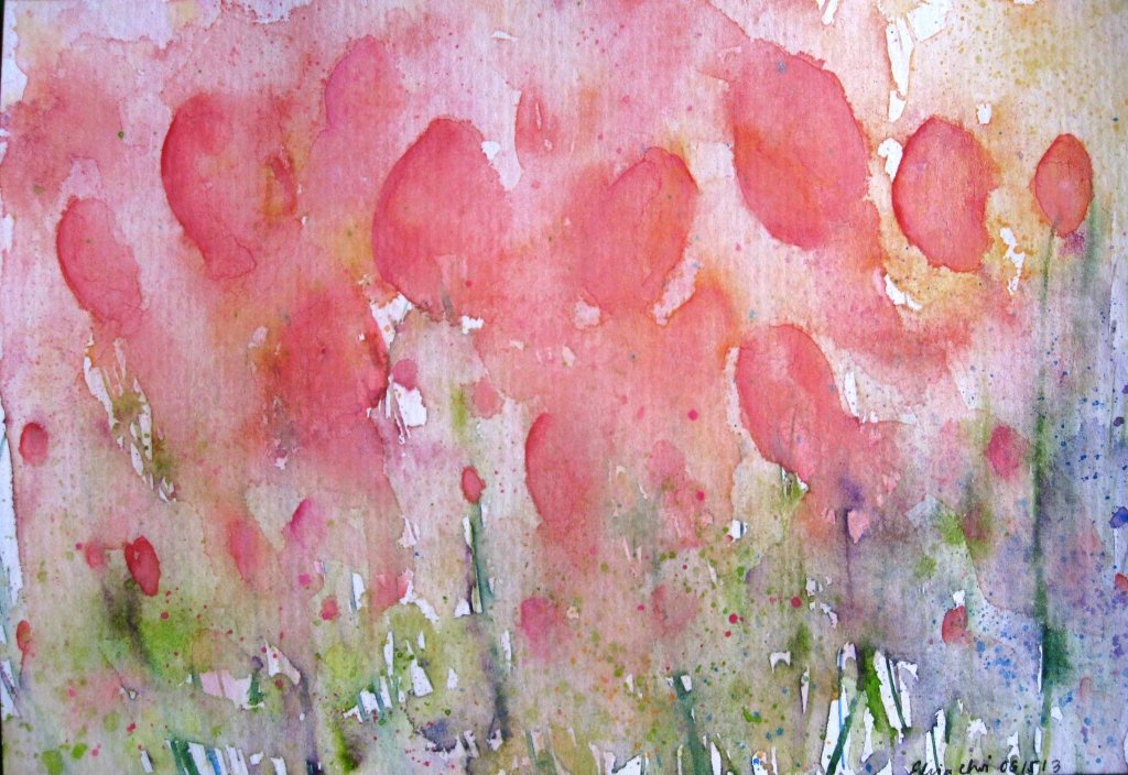 Memory for me is the awesome collection of life experiences. It might be a certain happy childhood event. It might be a sad encounter when I pass by a beggar. It might be the anger feeling of a betrayal from someone. I created Tulips Overflow because their vivid colors and simplicity captured me. I have seen a field of tulips on T.V. and bouquet of tulips being sold in the market. That memory makes me happy. I love nature and whenever I think of flowers and trees their essence somehow refreshes me. It reminds me of the wonderful creation of God. Painting them makes me grateful of all these blessings.