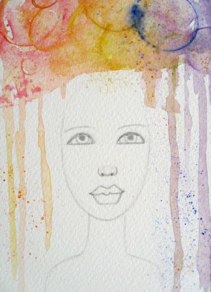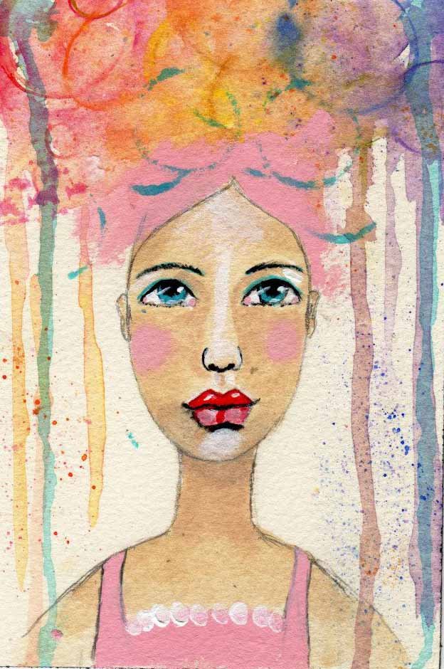 I’ve drawn portraits before but not the whimsy kind and that is my aim for this piece. I learned some basics and refresh my memory on portrait illustration. It was quite fun. I added some splashes of watercolor washes. In a way I was relating to myself as I work on Outburst. Perhaps outburst of emotions, inspiration, optimism.