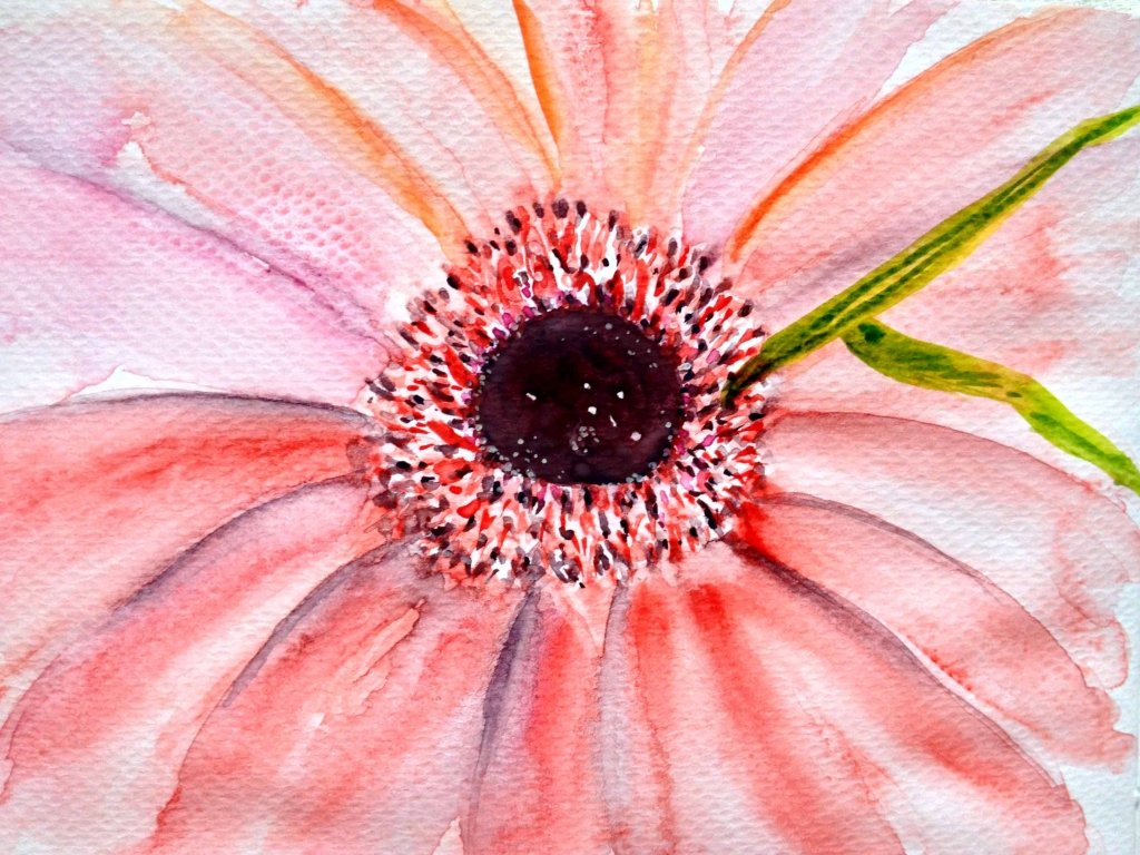 The center of the flower is the interest and the excitement. It is where the petals are formed and spread into the vastness. The added thrill is looking at the subject for the first time and then thinking how to paint without even sketching. There is a craving for looseness and freedom in the dancing of the brush. The paint is light at first before adding more and then leaving some. The light, the dark and the complementary. Approaching a painting style like this always makes me feel like seeing the sunset for the first time, or meeting my love, or traveling–pure exhilaration. Praise God for the beauty of His work!