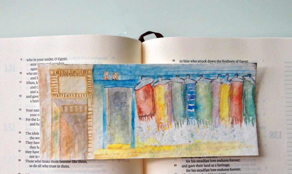The inspiration behind the bookmark painting was from a photograph of Leigh Gretton at Paint My Photo. It was a street shot at Kathmandu Nepal. The vivid colors moved me to recreate it and somehow whirl me into that quiet corner. My prayers for the people of Nepal.