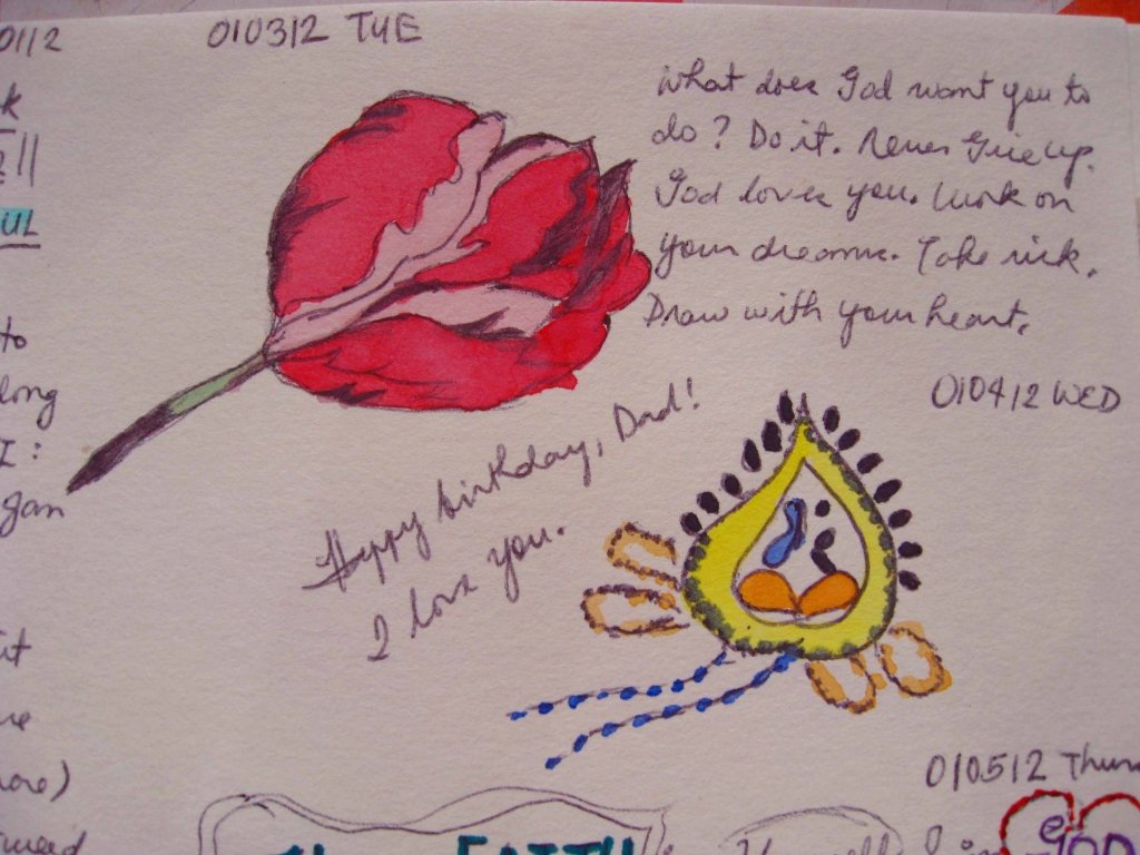 Last year I journal with words. I write my day’s event on paper. Filling it with complete details as much as possible. This 2012 I still journal but this time I DRAW my day’s event and write.