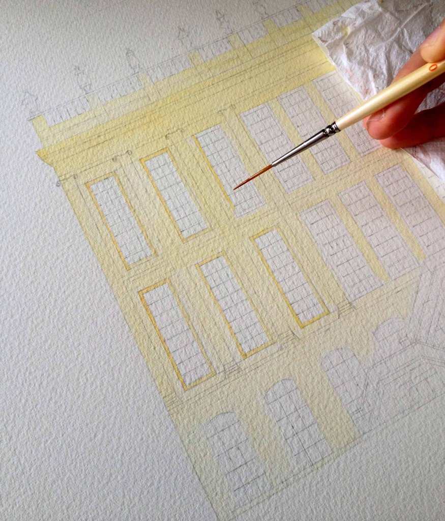 Out of the three architectures, Pemberley has been the most challenging building to work on. Not only was the measurement part tricky but also painting in between the windows cause the brush to move along quite stiffly. Nevertheless, what I think brings the painting to life are the windows. It reflects the fragments of sky and nature making this painting sing.