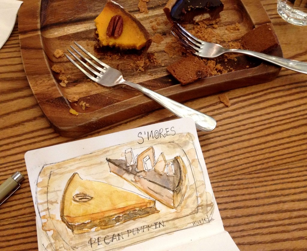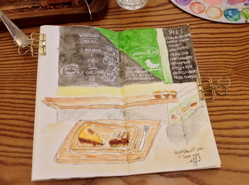 Momi Airees’ sketch of pies and the cafe counter with her lovely handwriting
