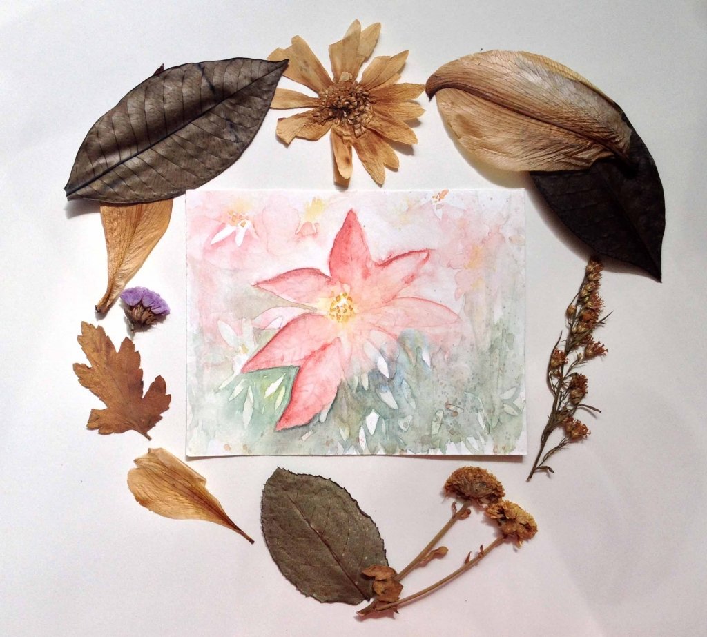 “Poinsettia” in watercolor