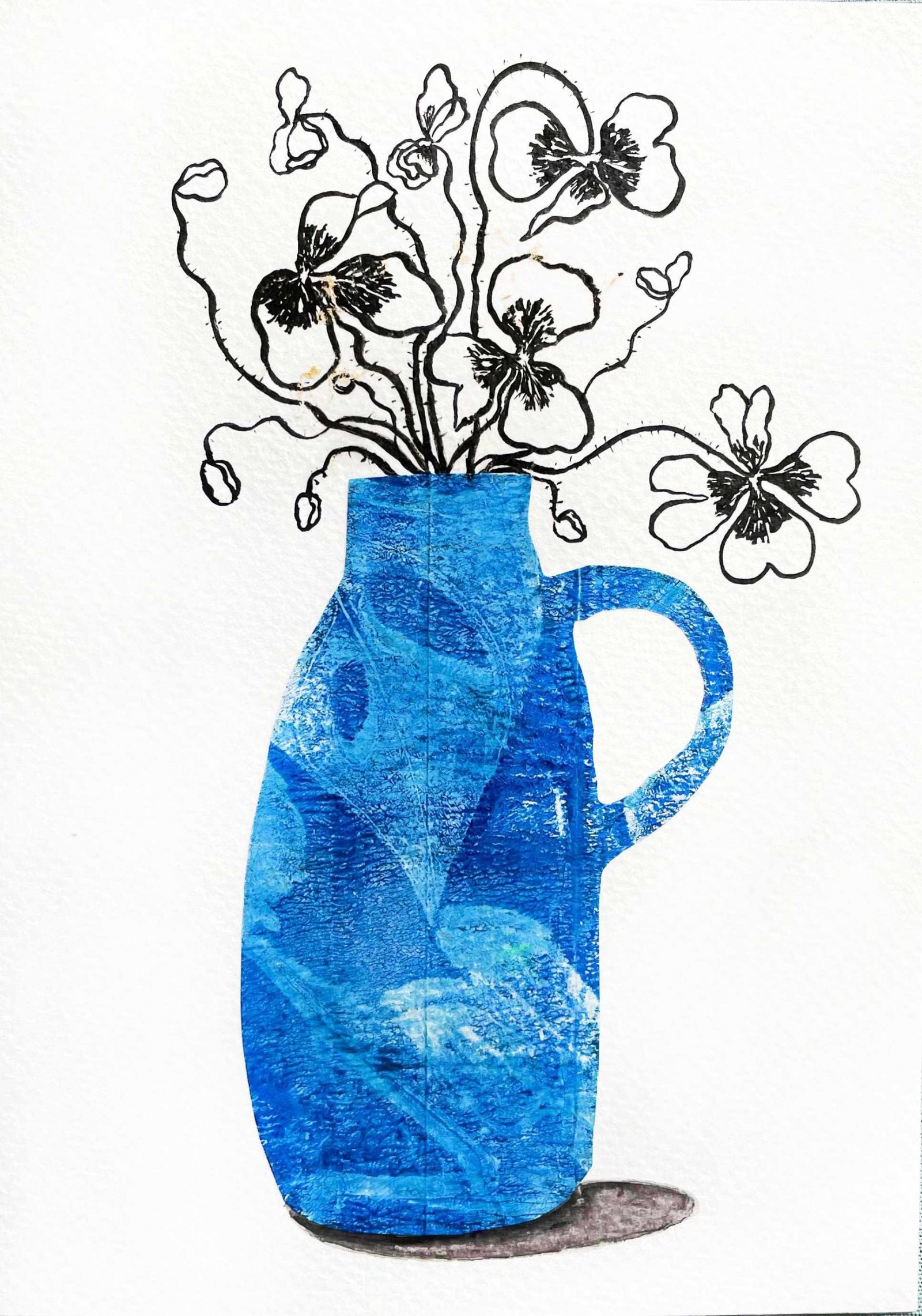 Elisa is a mixed media artist. She likes to bring her sketchbook and pen outside to express the beauty of this world. She is interested in printmaking because of its unique outcomes. Monoprint, intaglio, and relief print are some of her favourite methods. She enjoys illustrating her life using different mediums like watercolour, ink, collage, charcoal, coloured pencils to enhance and make her work personal. She sees potential in waste materials and often collects them to utilise in her artworks.