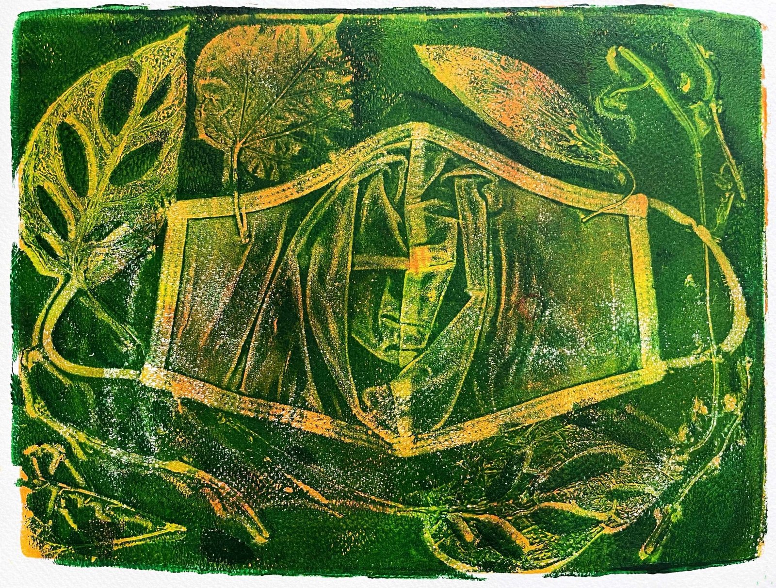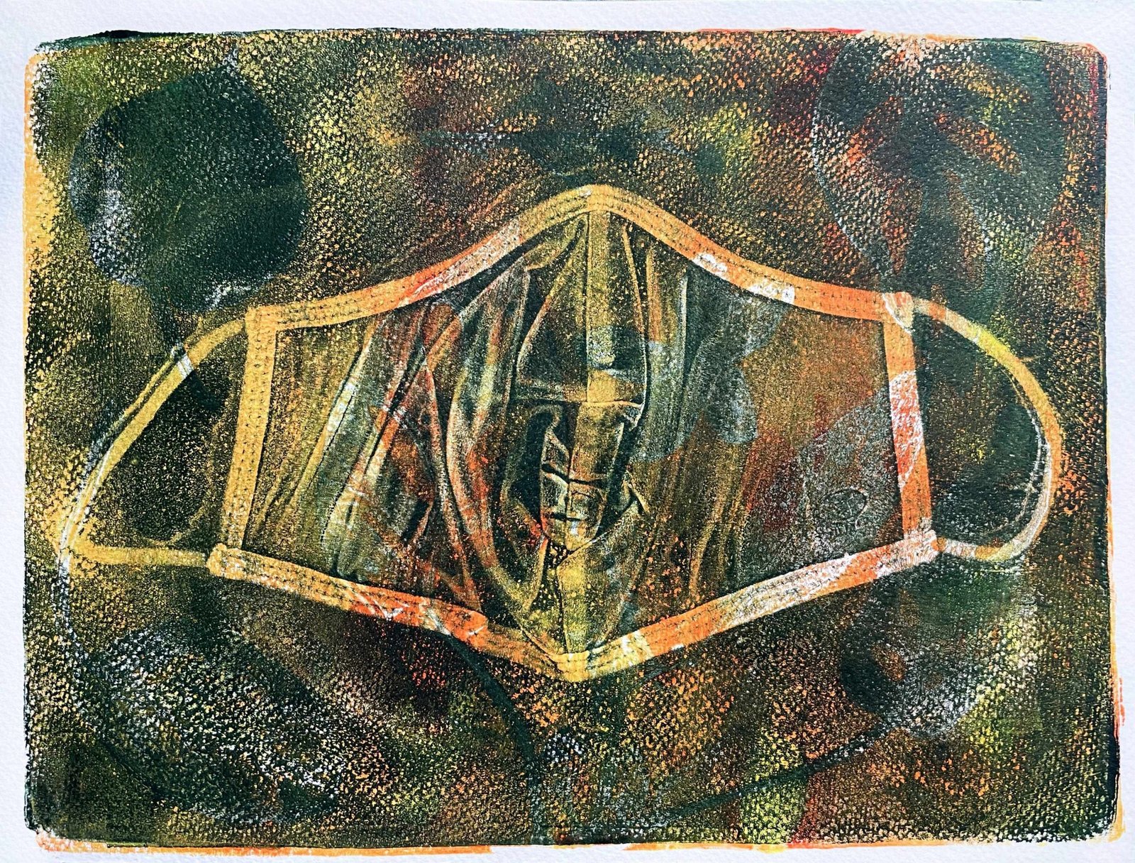 Mask is part of our apparel for now. I used an old cloth mask to create a print. I added leaves, but the dark color covered it as if darkness won. But…
