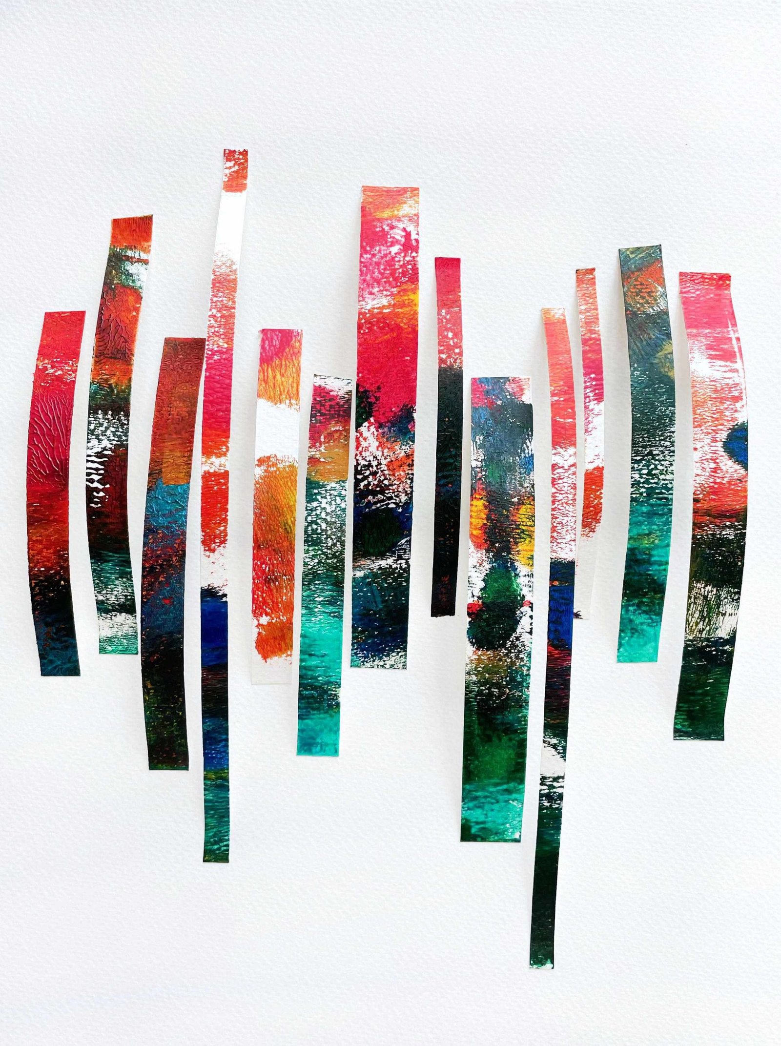 When I printed each strip of the paper, they were all bent. I decided to stick both ends to create an arc. Each strip represents a day in my life with peaks and valleys.