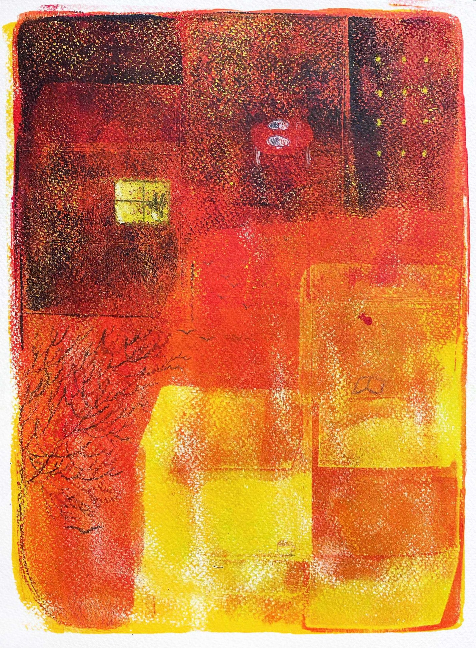 Abstract series about my life. I find it challenging to create abstract art because I prefer a structure. I wrote words to guide me, shifted, and played around with the composition and images. I cut and tear lots of tiny pieces of paper. Giving myself time to explore is crucial.